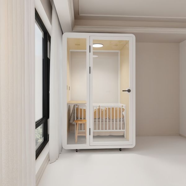 Achieve perfect work-life balance with this innovative prefabricated pod, a versatile space designed to adapt to your daily needs. It seamlessly functions as a focused work pod for deep concentration, a soundproof karaoke booth for stress-relieving entertainment, and a serene baby sleeping booth for peaceful naps. The superior acoustic insulation ensures that each activity remains undisturbed by the others, allowing you to transition effortlessly between professional duties and personal rejuvenation within your own home. This all-in-one solution empowers you to excel at work while being present for your family, creating a harmonious and productive living environment.